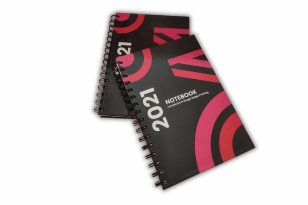 Professioneel ingebonden documenten met een metalen spiraal, ideaal voor handleidingen, kalenders en presentaties.